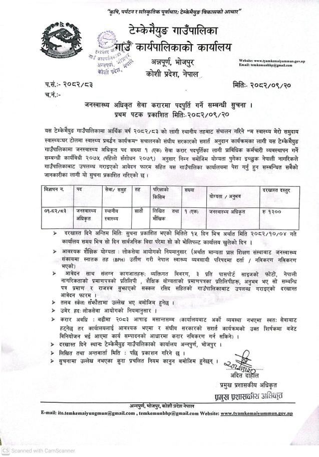 जनस्वस्थ्य अधिकृत सेवा करारमा पदपुर्ति गर्ने सम्वन्धी सूचना