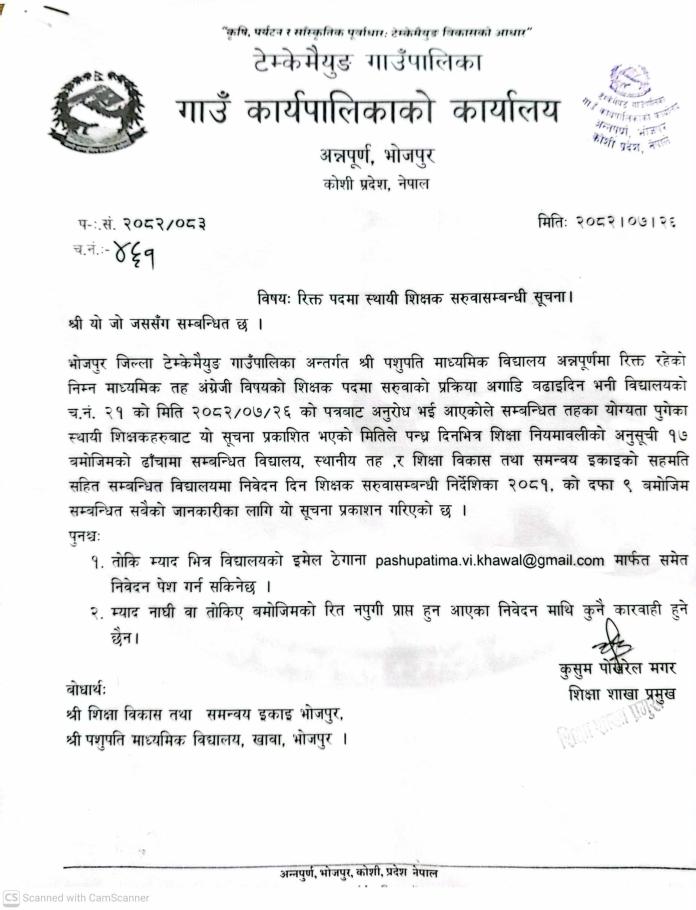 » रिक्त पदमा स्थायी शिक्षक सरुवा सम्बन्धी सूचना