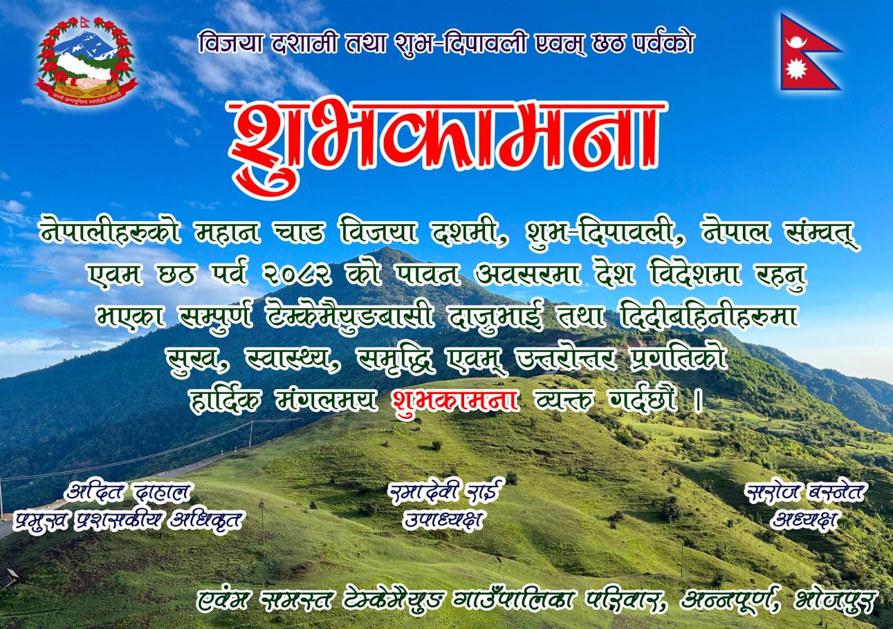 » विजया दशमी तथा शुभ–दिपावली एवम् छठ पर्व २०८२ को हार्दिक शुभकामना