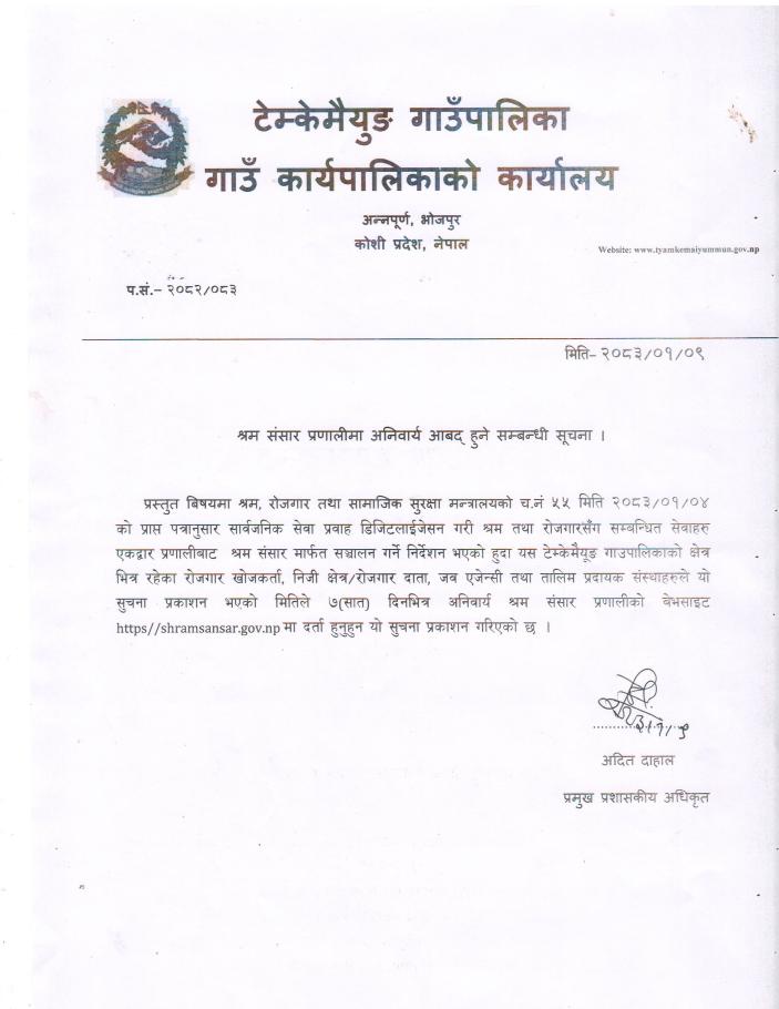 श्रम संसार प्रणालीमा अनिवार्य आबद् हुने सम्बन्धी सूचना
