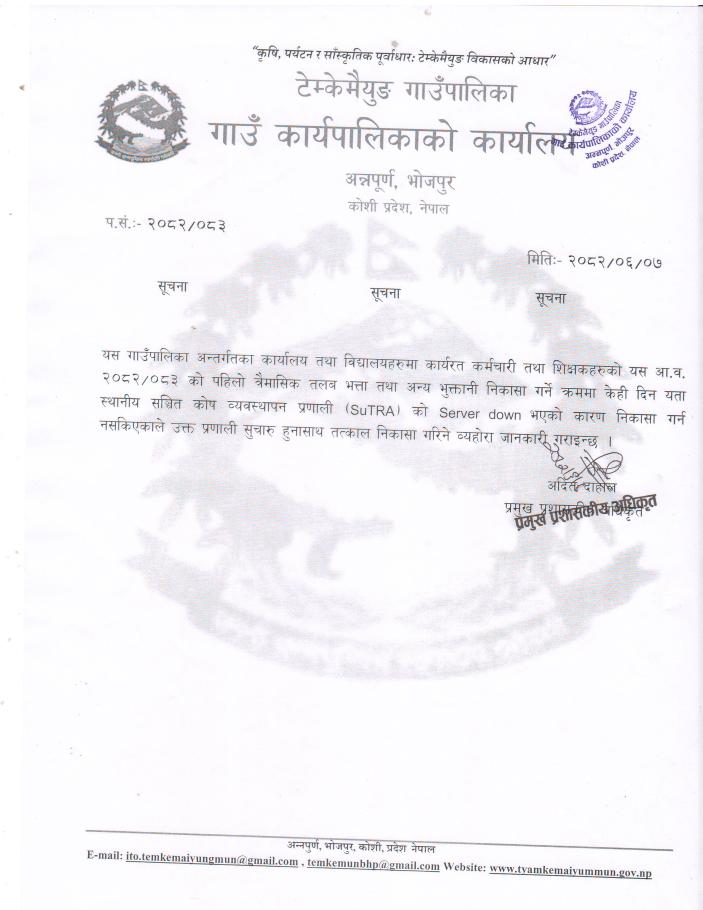 टेम्केमैयुङ गाउँपालिका, गाउँ कार्यपालिकाको कार्यालय, अन्नपुर्ण,भोजपुर, कोशी प्रदेश, नेपाल