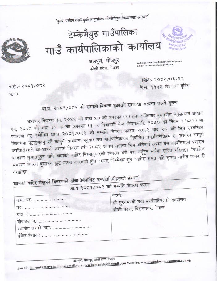 आ.व. २०८१/०८२ को सम्पत्ति विवरण बुझाउने सम्बन्धी अत्यन्त जरुरी सूचना