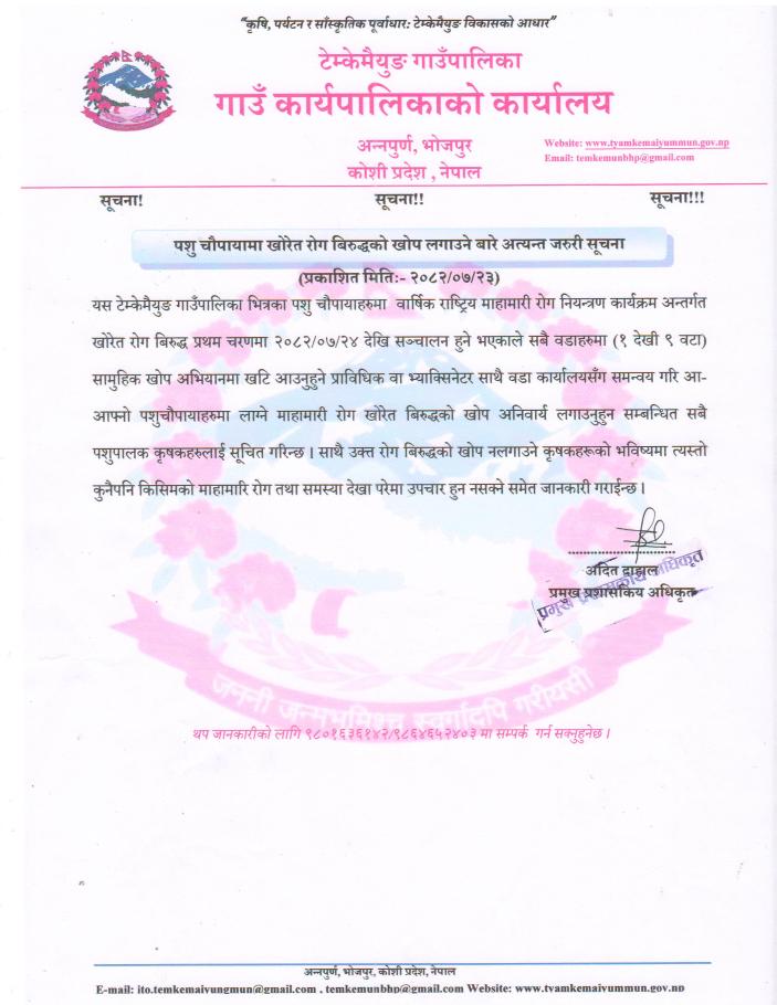 पशु चौपायामा खोरेत रोग बिरुद्धको खोप लगाउने बारे अत्यन्त जरुरी सूचना