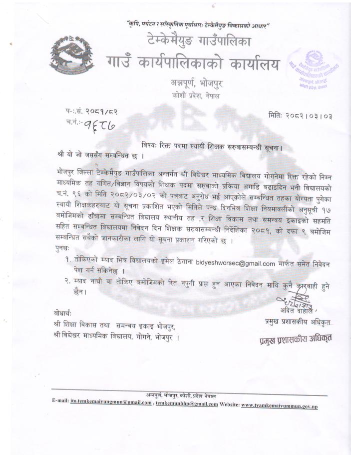 » रिक्त पदमा स्थायी शिक्षक सरुवा सम्बन्धी सूचना