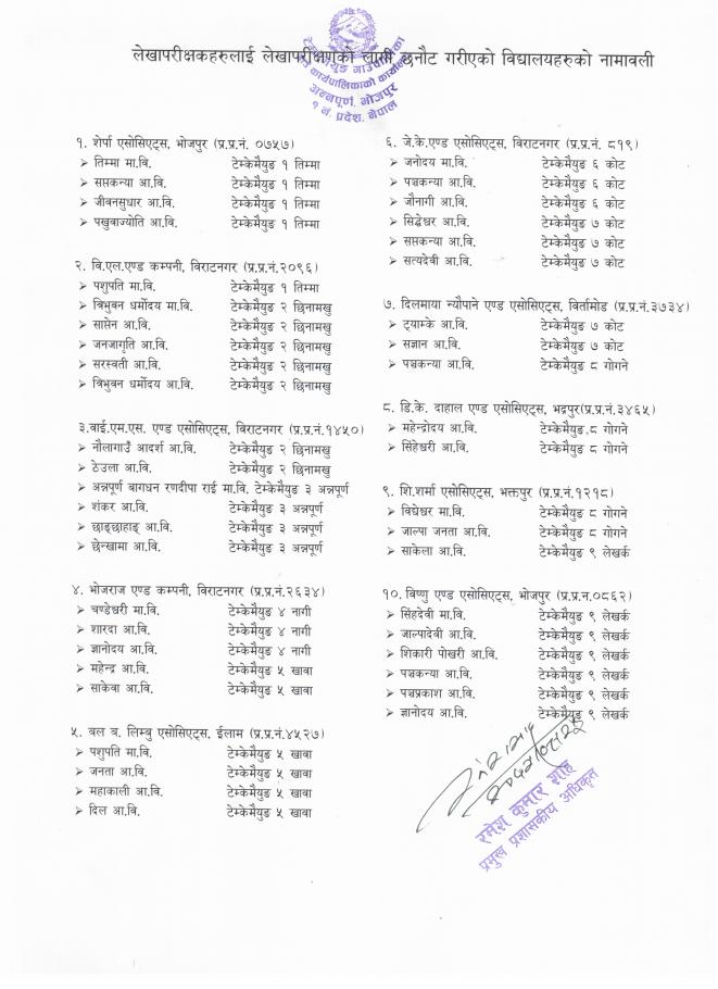 » विद्यालयहरु काे लागी लेखा परिक्षक छनौट गरिएको सम्बन्धमा ।