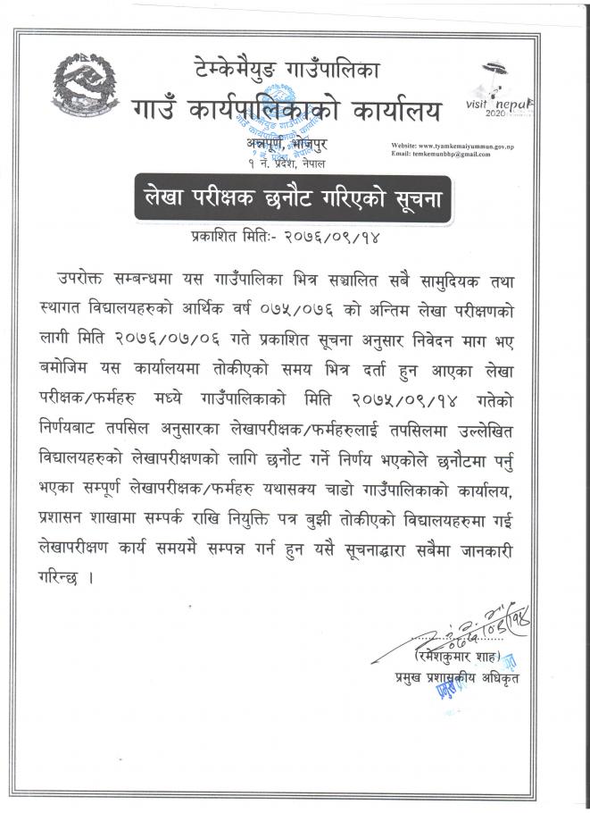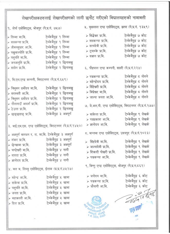 » विद्यालय लेखा परिक्षक छनौट गरिएको सूचना