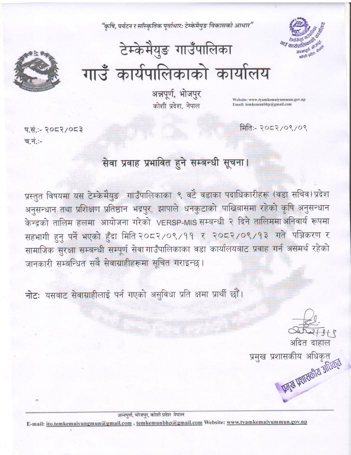 सेवा प्रवाह प्रभावित हुने सम्बन्धी सूचना